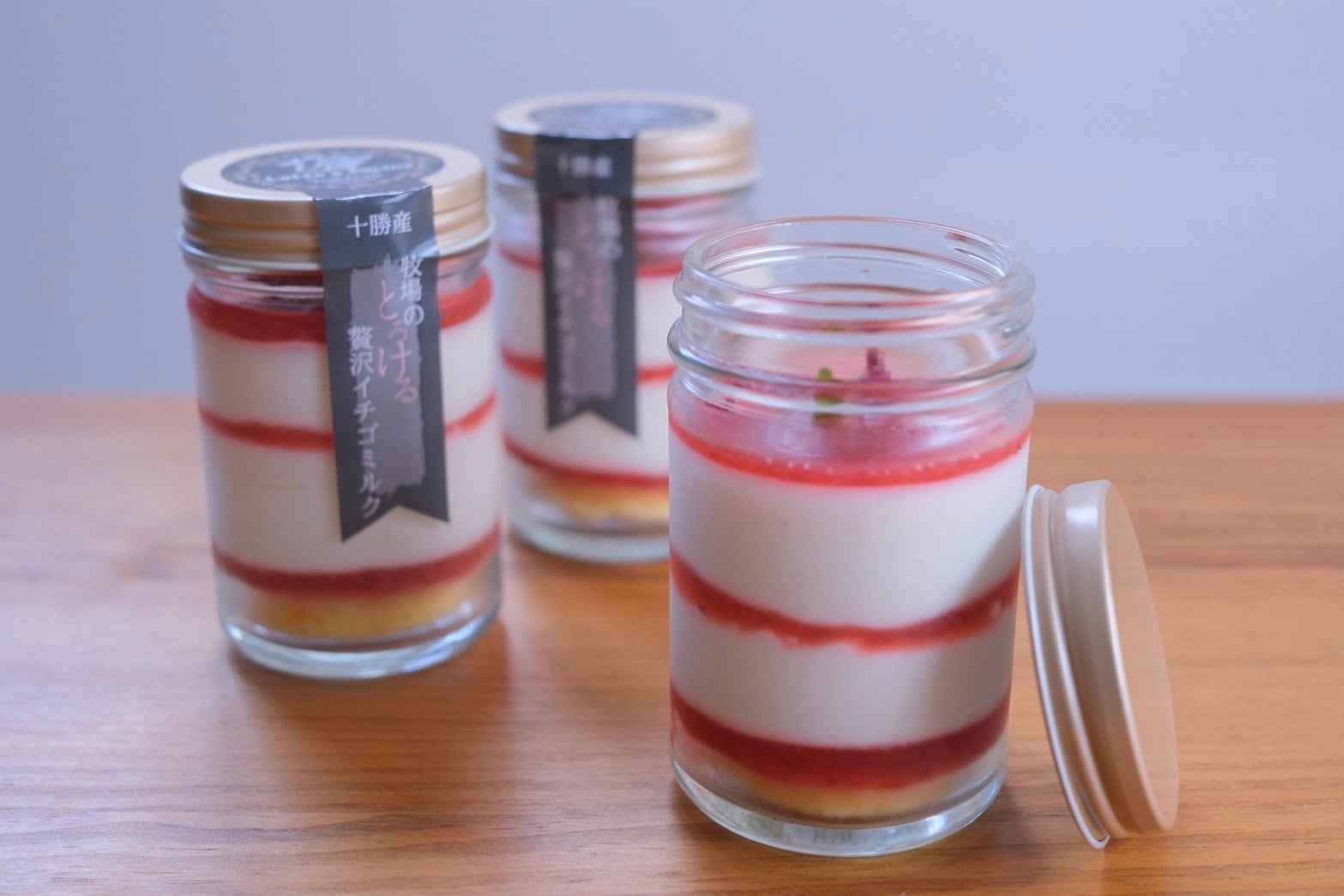 低温殺菌した搾りたての牛乳を濃厚な生クリームに加工して出来上がった、滑らかな舌ざわりのミルクムースとバニラミルクババロアの間には甘くて酸っぱい真っ赤な苺のピューレを仕込みました。